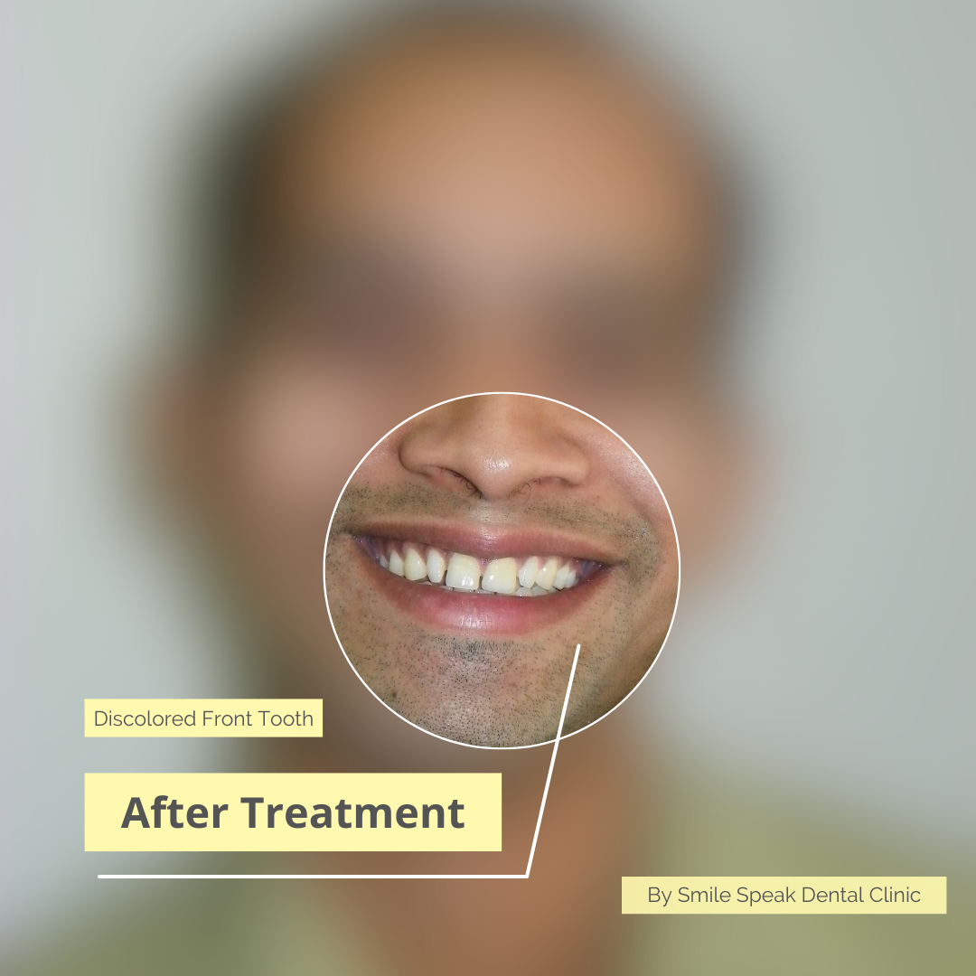 Brighten Your Smile: Expert Solutions for Discolored Front Teeth at Smile Speak Dental Clinic.